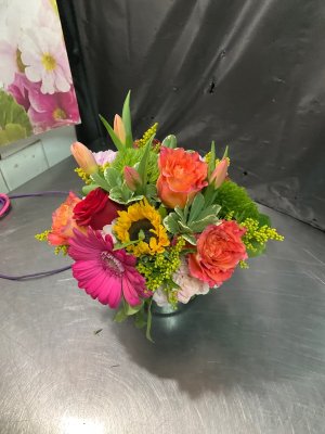 Wow! Beautiful! Thanks for putting together the lovely flower arrangement for my Mom and for sending me the photo. I know my Mom will be happy to receive them.