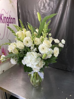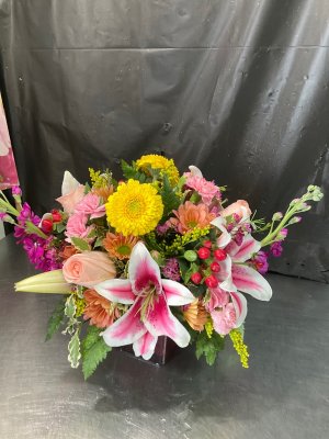 There is NEVER a time where I am disappointed in the orders that I place with Flower Kingdom! This arrangement is so very lovely, and the recipient was thrilled and complimented how it brought her such joy. Thank you for ALWAYS fulfilling our orders with great client services and exceptional floral designs!