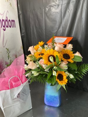 A very pleasant associate took my order. He listened to my details about my color choices and the staff of Flower Kingdom arranged the most beautiful floral arrangement. It made a lasting impression to all that had the opportunity to view it. Excellent Service from beginning to end by the Flower Kingdom Associates!