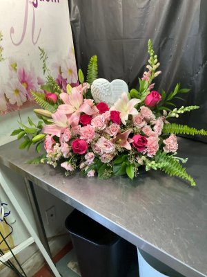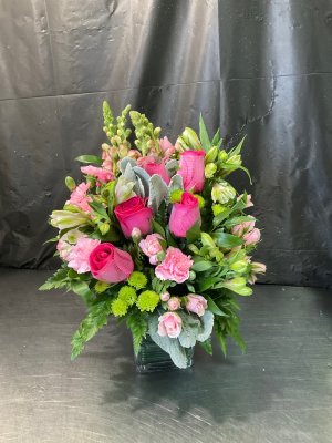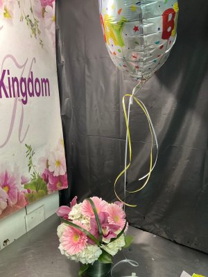 Is beautiful. And it was just a few days after Valentine's Day, which I was worried the flowers would look old and sad but I called them and they said nope we'll make it beautiful for your mom. And they did. Just a beautiful arrangement for a decent price thank you flower kingdom.