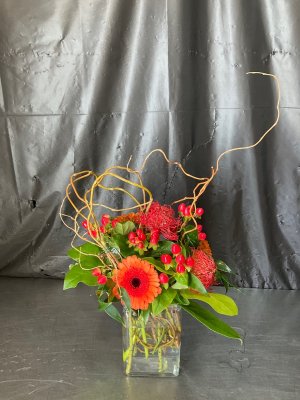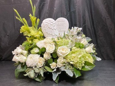 Beautifully done arrangement that the recipient said “raised the bar for her husband”.