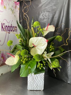 There is NEVER a time where I am disappointed in the orders that I place with Flower Kingdom! This arrangement is so very lovely, and the recipient was thrilled and complimented how it brought her such joy. Thank you for ALWAYS fulfilling our orders with great client services and exceptional floral designs!