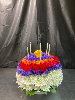 We asked the florist to create a bright and vibrant design for our birthday girl, and they made a beautiful arrangement!!
