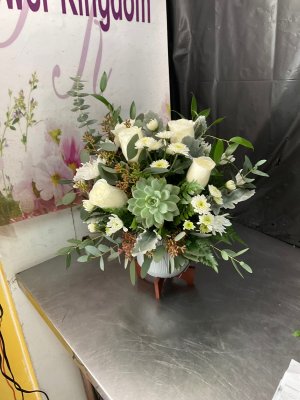 Beautiful Flowers! My friend loved them and they were a nice addition to the holiday table. Thank you Flower Kingdom for a beautiful arrangement.