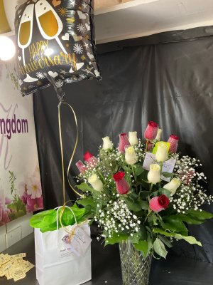 Absolutely stunning! They were the most beautiful flowers in the room. I would absolutely recommend flower kingdom and I would absolutely use you again. You are phenomenal.