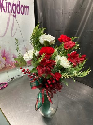 The flowers were beautiful and my friend loved them. They looked beautiful on her table for Christmas dinner. Thank you Flower Kingdom for a beautiful arrangement.