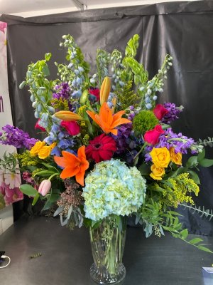 This arrangement is simply stunning! Flower kingdom never disappoints! The recipients were thrilled!