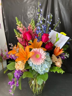 Beautiful arrangement sent quickly. Always can depend on Flower Kingdom to do a spectacular job.