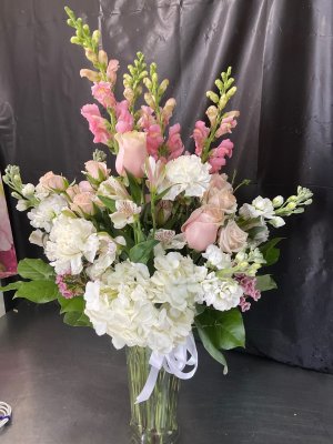 The recipient June was thrilled with the beautiful arrangement. Thank you for creating such beauty, and for forwarding the photo. That is so professional. I will surely return for your beautiful work. Please thank the designer.