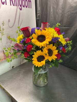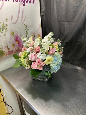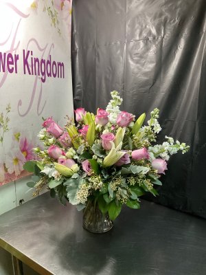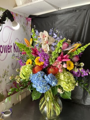 This arrangement is simply stunning! Flower kingdom never disappoints! The recipients were thrilled!