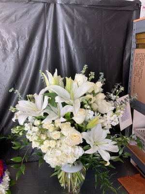 The arrangement looks nice, I had asked for some Astor lilies and would think for $125 There would be more white roses, I had asked for that to be the predominant color. Sending a preview photo is a great idea