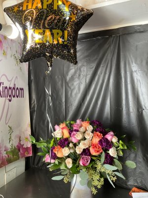 First time ordering from Flower Kingdom. Did not disappoint us, beautiful arrangement for my daughter's birthday 🎉 and it was delivered early morning. Highly recommend. Thank you 🙏🏼