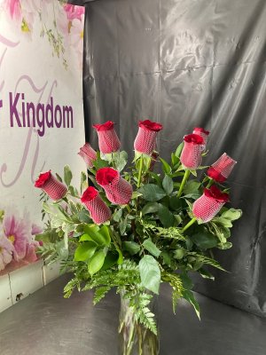 It is supposed to be a dozen red roses . Quite beautiful but not what was requested