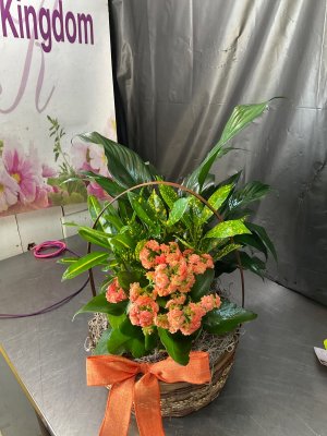 The pink looks like it is for a young girl. Phyllis is turning 90 yo. Can you show me what the basket with orange flowers and bow looks like.