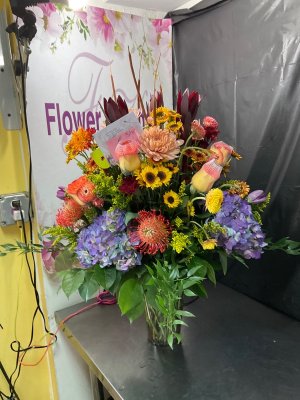 Beautiful flower arrangement and excellent customer service. I recommend Flower Kingdom 100%. Thank you so much!