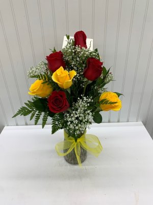 Pretty arrangement and sent a picture ahead of time to show me what was sent.