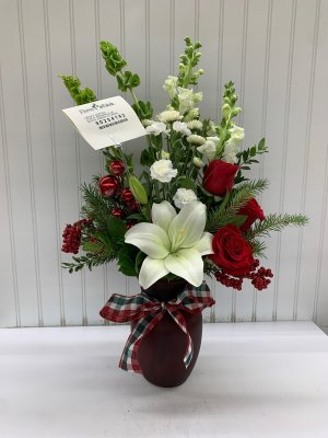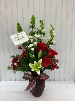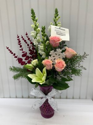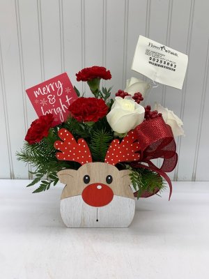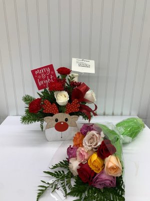 The flowers were purchased for my mom as thank you. She raved about this flower arrangement for a few days. The flowers were beautiful and she loves the reindeer! Cute touch for the holidays. I appreciate the photo before it was delivered. Thank you!