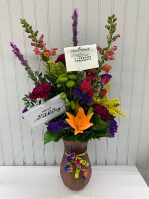 We're pleased with the arrangement. The recipient said it's beautiful. Thank you once again to Flower Patch and your friendly staff. Highly recommend this florist, you won't be disappointed.
