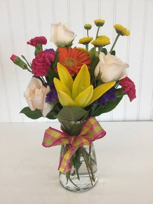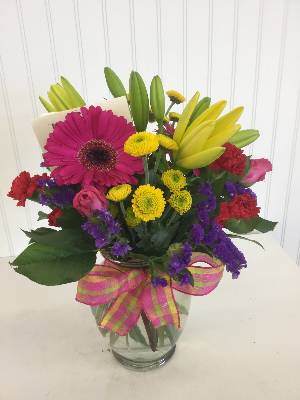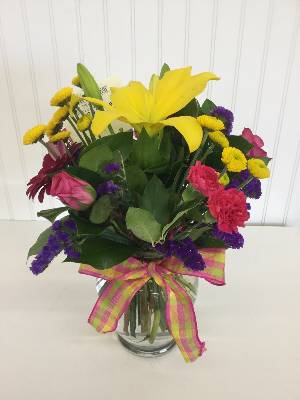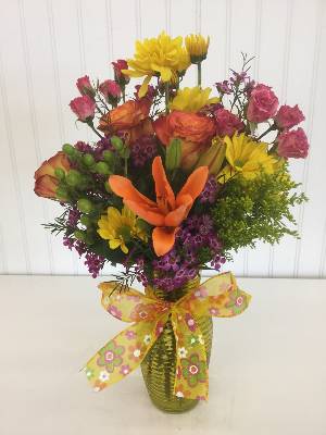It's a lovely arrangement, but it doesn't look quite like the photo on the website. I understand that your flowers vary by season, but I specifically chose the mango arrangement for its vibrant yellow and orange - hopefully the lilies will open and add