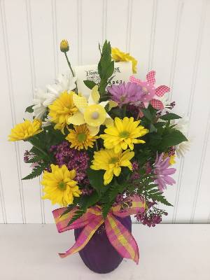 The arrangement is beautiful, but I was hoping to see brighter colors in the arrangement. I feel that the pink flower is not as bright as I had hoped for. Is there any way to remove the pink flower and add a brighter colored flower?