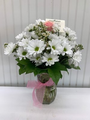 The flower arrangement looks great but I did request no other flowers besides the daisies & the rose