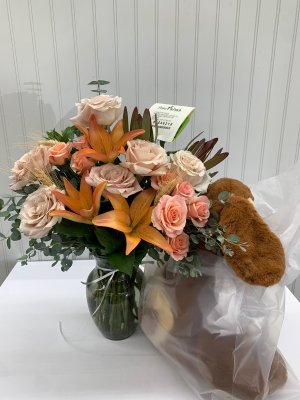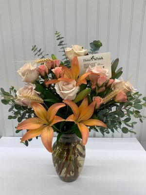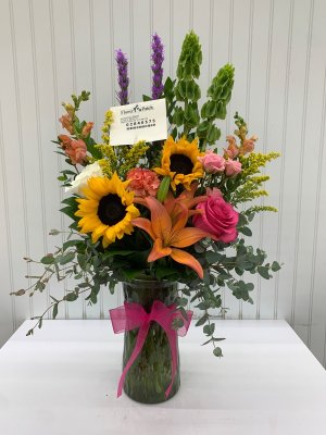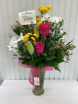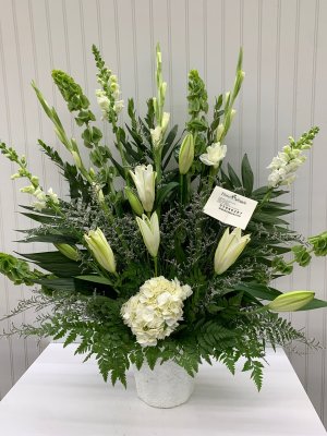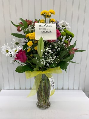 Beautiful arrangement!! It was perfect! Such a wonderful way to honor my grandma! Loved getting a photo of the finished arrangement. Thank you Flower Patch!