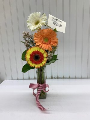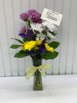 The daisies were pretty. But the filler did not make the bouquet pop. And the occasion was the death of a mother. I didn't think the ribbon matched the occasion. Thanks. Loved getting the picture. I appreciated seeing what I paid for. Thanks for that. Great practice for the customers.