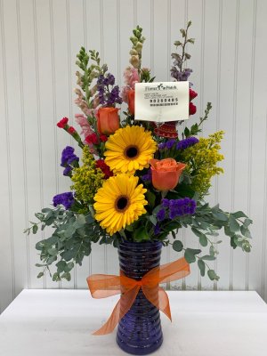 Flower Patch always does a beautiful job on the floral arrangements I order. I really appreciate receiving a photo of the arrangement. Customer service is always excellent and the flowers were delivered quickly. Thank you Flower Patch!