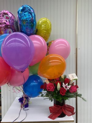 Are there 25 balloons and 25 flowers? Did you get my email of verbiage for the custom card?