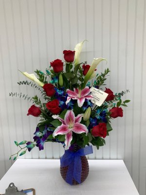 Beautiful arrangement once again. One totally satisfied customer! Thank you, I now know where to always shop for flowers!