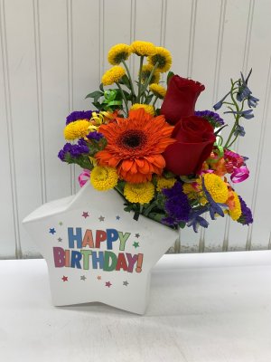 Beautiful flowers! Arrived when promised. Delivery person even brought the arrangement inside for my senior friend! Totally happy! I highly recommend Flower Patch!