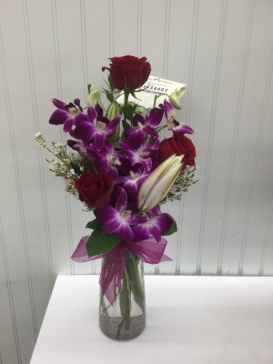 The flowers are stunningly beautiful. Thanks for your gorgeous design and prompt, efficient delivery! And thanks for the photo! My girlfriend said to your delivery guy, what am I going to do with this guy? He keeps sending me flowers! He said, “Don't marry him—because then the flowers will stop!” She laughed. But in my case, they will not!