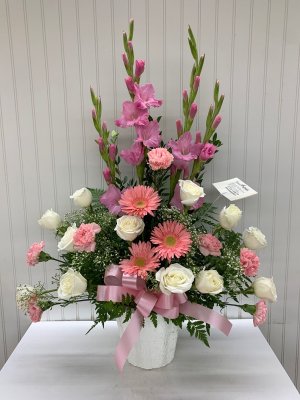 These flowers are beautiful! Thank you guys for putting so much care time and thought into these flowers. They were exactly the arrangement I was looking for to send to the family as sympathy/funeral flowers, very well-made.