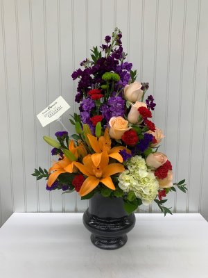 Thank you, the arrangement looks just like the photograph online. The flowers were fresh, the colors are vibrant, and they arrived on time to the church before the funeral started.