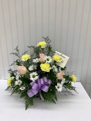 Such a beautiful arrangement! Very pleased with how it turned out. Exactly as we hoped and delivered as requested! The picture tells all and is very much appreciated since you "never know what will be received" these days. We will absolutely order from Flower Patch again and refer friends. Thank you!