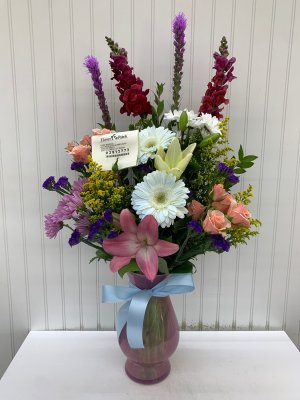 a little pricey on the delivery fee, but the arrangement is beautiful! Thanks!