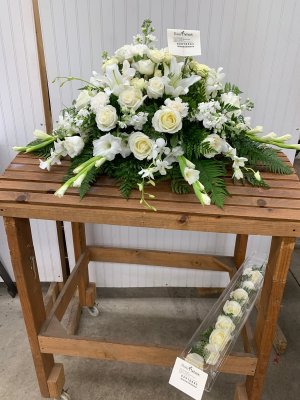 Love the beautiful casket spray that was created for my husbands funeral. It was everything that I had envision. The boutineers were also beautiful for the pallbearers. Thank you so much!