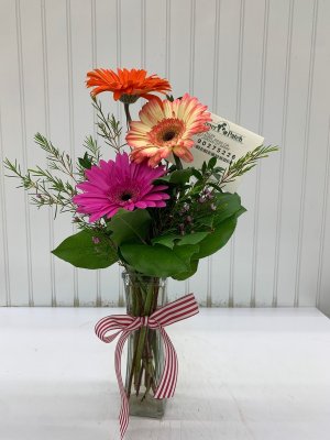 Beautiful floral arrangement was delivered on time and just as pictured on the website. Customer service was very helpful with a last minute change.