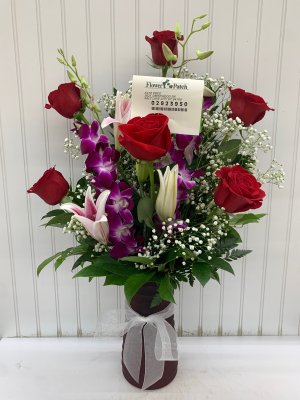 I bought this beautiful bouquet for my friend's birthday... I love that Flower Patch sends a picture before delivery. My friend said it made her day, and she also sent a photo which matched what the store had sent which these days is refreshing. My only complaint is the delivery fee ..but with gas prices, maybe that's part of why it's a bit high.