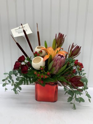 It wasn't what I thought I ordered but it turned out much better! The arrangement was a nice size and lived the planter. My daughter-in-law was so happy.