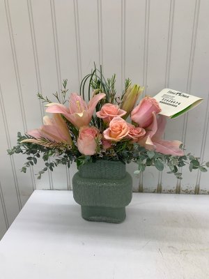 Beautiful floral arrangement was delivered on time and just as pictured on the website. Customer service was very helpful with a last minute change.