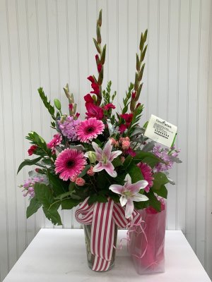 Very beautiful very happy with the arrangement f flowers I will definitely be a repeat customer
