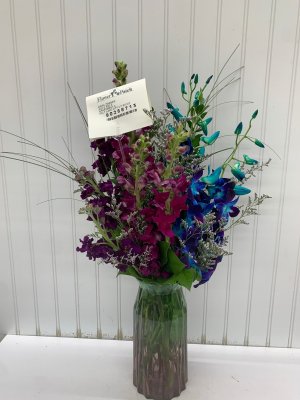 The flowers were absolutely beautiful. Just what I ordered. The customer service was outstanding. I have ordered from the Flower Patch before and will continue to do so.
