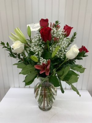 I think it's suppose to have a dozen roses as well ? It's like 100$ make it the best looking flowers you can I don't care what it costs it's to get my wife back haha