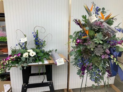 Our flowers we absolutely perfect!!! We asked for a lot of custom work, And both arrangements were Spot on. Thank-you, your talent and Skills made our day a perfect memorial for our brother.