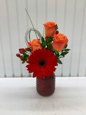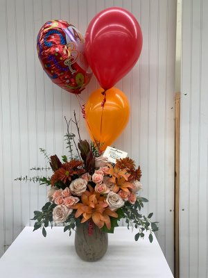 "I’m so pleased with the arrangement I ordered. I wanted vibrant colors and this is exactly what I hoped for. Thank you!"