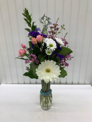Beautiful flowers! Arrived when promised. Delivery person even brought the arrangement inside for my senior friend! Totally happy! I highly recommend Flower Patch!