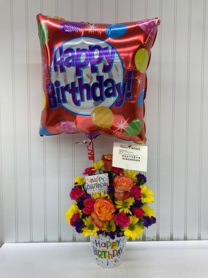 The birthday arrangement is beautiful! Thank you for sending a photo!! Thank you for being so easy to work with.