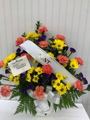 Thank you, the arrangement looks just like the photograph online. The flowers were fresh, the colors are vibrant, and they arrived on time to the church before the funeral started.