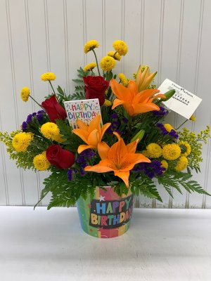 The birthday arrangement is beautiful! Thank you for sending a photo!! Thank you for being so easy to work with.